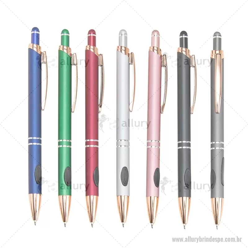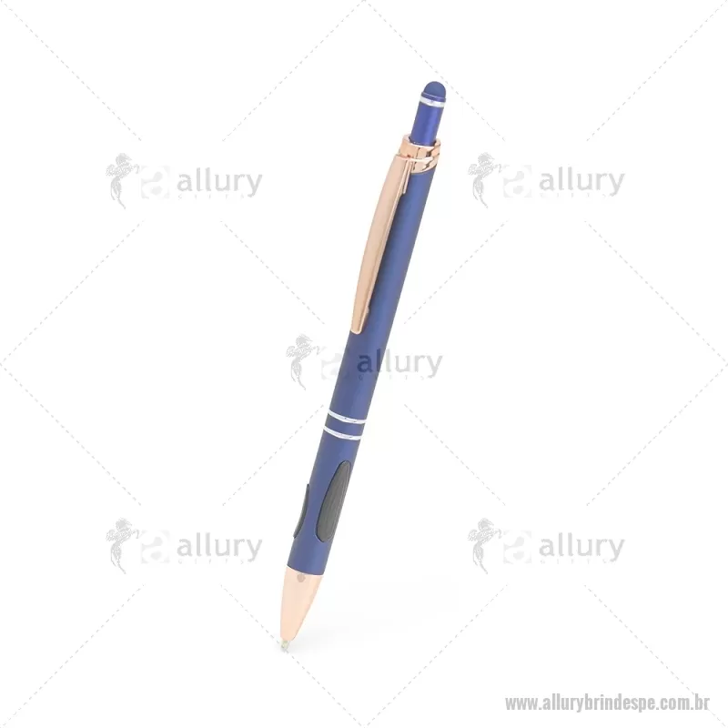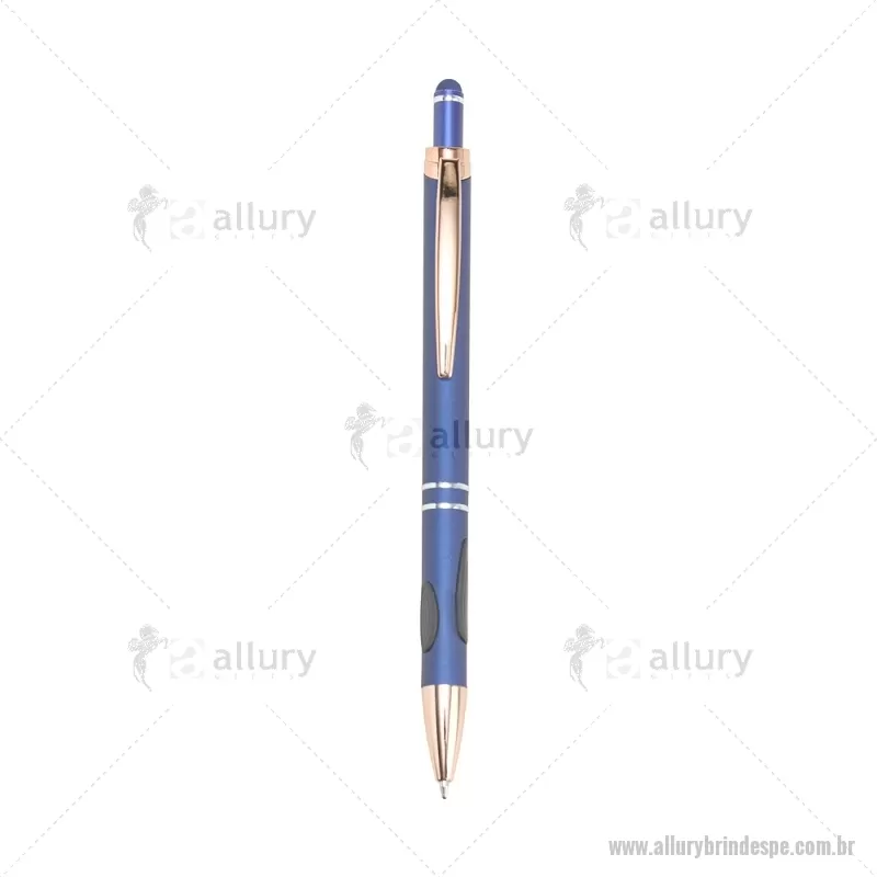 Caneta Metal Touch A elegância e o conforto combinados em uma única caneta esferográfica para garantir uma escrita mais agradável através da sua construção metálica e seu par de grips em borracha, além de ponta e clipe em plástico. Sua carga azul de 1.0 mm possui acionamento por clique com ponteira emborrachada que que permite seu uso como uma caneta touch para interação com smartphones, tablets e demais dispositivos de telas touchscreen. Largura : 1,5 cm x Circunferência : 4,5 cm x Comprimento : 14 cm Peso aproximado (g): 17 - - ALLPECMT293