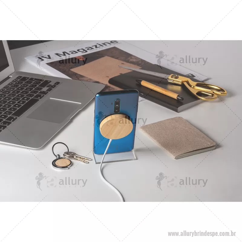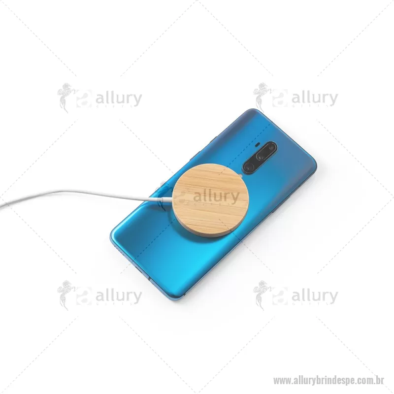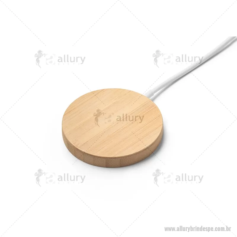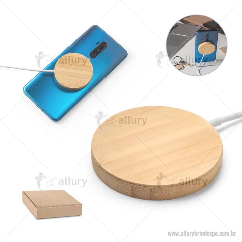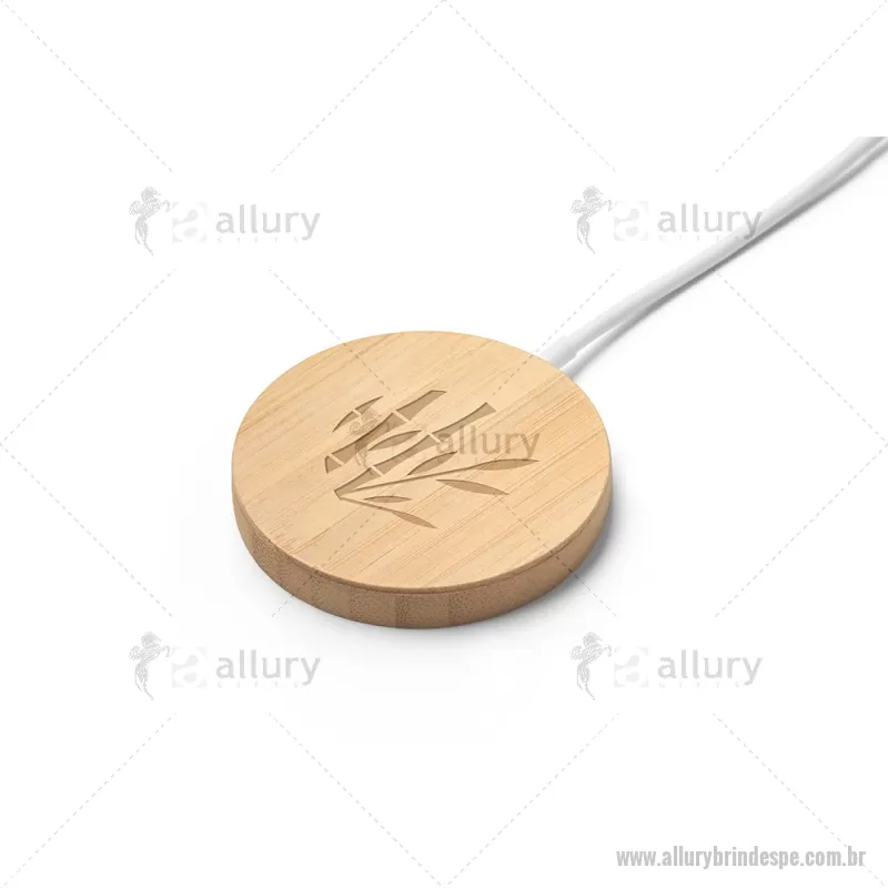 Carregador magnético por indução super-rápido em bambu 15 W Carregador magnético por indução (wireless) super-rápido em bambu. Potência de carregamento super-rápido de 15W. Incluso cabo de carregamento USB-C de 1 metro. Compatível com dispositivos móveis com tecnologia de carregamento sem fios. Fornecido em caixa presente de papel kraft reciclado. A cor e o resultado da impressão nos materiais naturais pode variar entre produtos. Medidas Produto: Ø59 x 8 mm Peso do Produto (g.): 35 - - ALLPETEC533