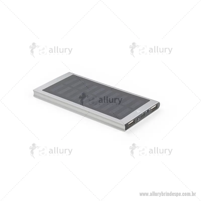 Bateria portátil em alumínio 100% reciclado 8.000 mAh Bateria em lítio, com painel solar e lanterna. Tem capacidade de 8.000 mAh e tempo de vida superior a 500 ciclos. Possui uma porta de entrada e saída USB-C e duas portas de saída USB-A. Incluso cabo USB-C para carregamento com cerca de 30 cm. Ideal para situações de emergência. Fornecido em caixa presente em papel kraft. 153 x 74 x 10 mm - - ALLPETEC518