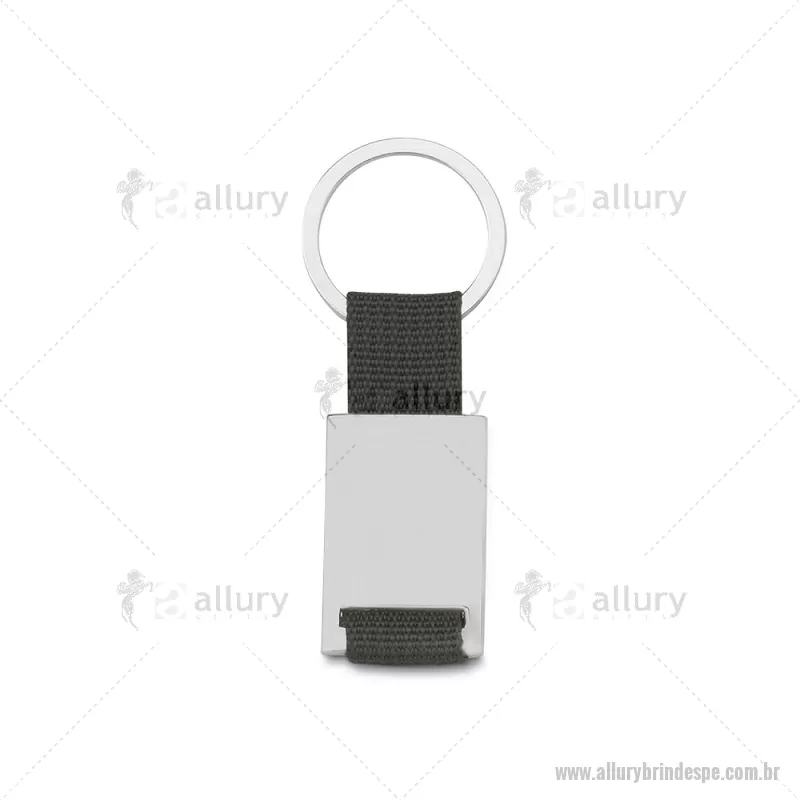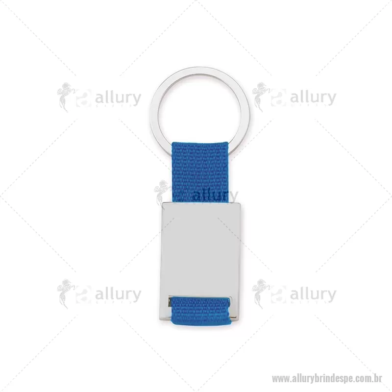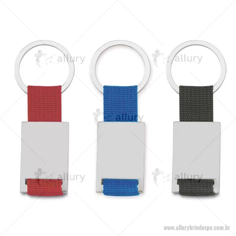 Chaveiro de metal retangular com detalhes em nylon + caixa com berço aveludado. Obs.: Frente e versão são iguais. Dimensão Produto: 8,5x3,4cm (AxL) Peso do Chaveiro: 0,025kg Peso do berço aveludado: 9g - - ALLPECHV214