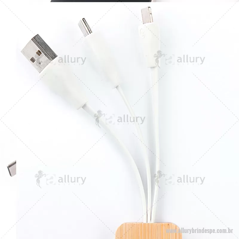 Chaveiro de capa de bambu com cabo para carregamento USB-A a lightning (Iphone) e Tipo C. Como o bambu é um material natural, a cor do item pode variar. 14x2,7cm - - ALLPECHV187