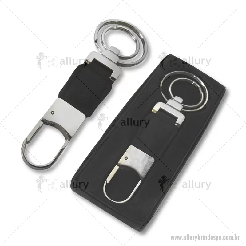 Chaveiro de metal com couro e 2 argolas personalizada - - ALLPECHV010
