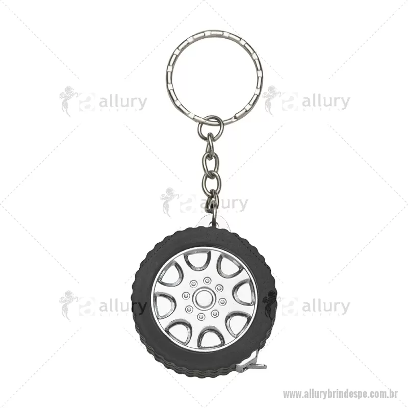 Chaveiro Plástico Trena 1 Metro Descrição: Chaveiro plástico em formato de pneu de carro e argola metálica. Possui uma trena com fita de alcance máximo de 1 metro, além de exibir suas medidas em pés e polegadas. Largura : 4,1 cm x Espessura : 1,6 cm x Comprimento : c/ argola: 10cm Tamanho total aproximado (CxL): 10,1 cm x 4,1 cm Peso aproximado (g): 24 - - ALLPEFTR020