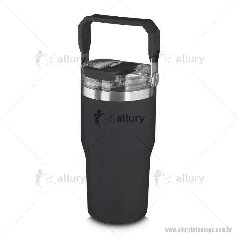 Copo térmico 650ml em aço inox com parede dupla, tampa rosqueável com alça em plástico, permite-se hidratar por canudo ou bico, com anel de silicone para vedação. Dimensão: 19,5xø8,7cm - - ALLPECPO131