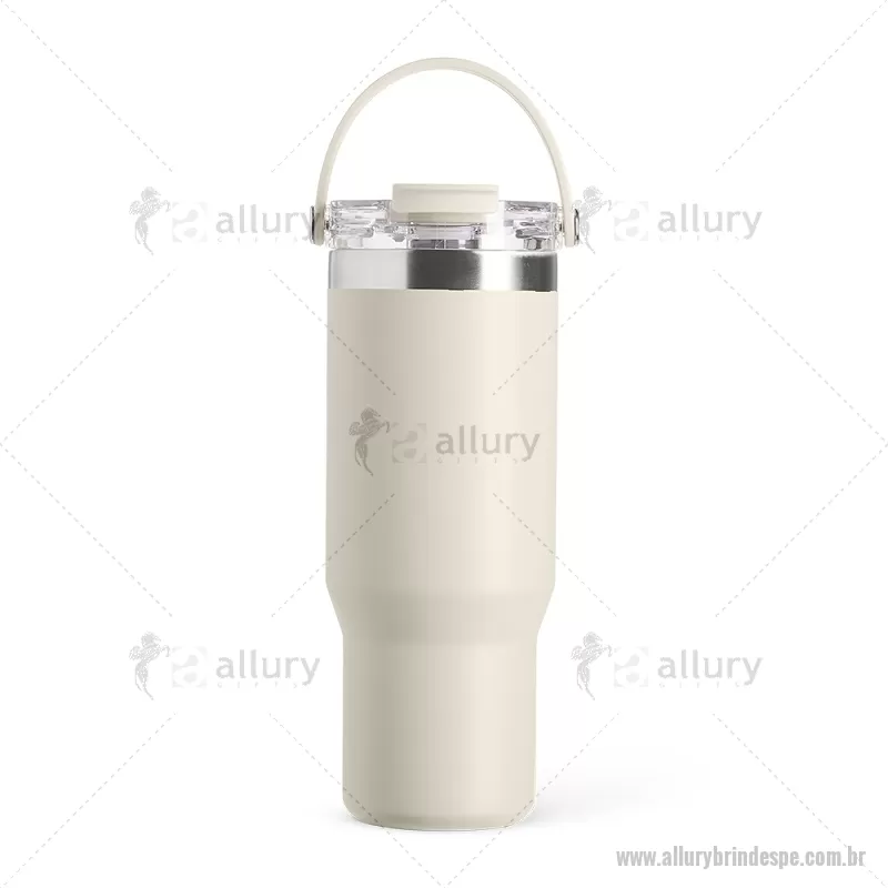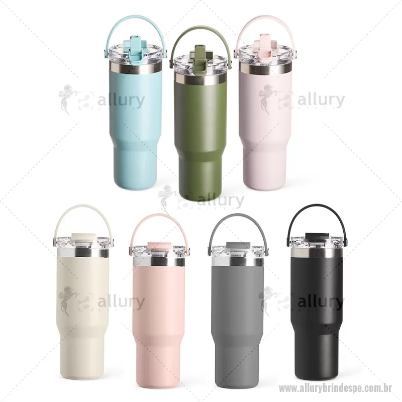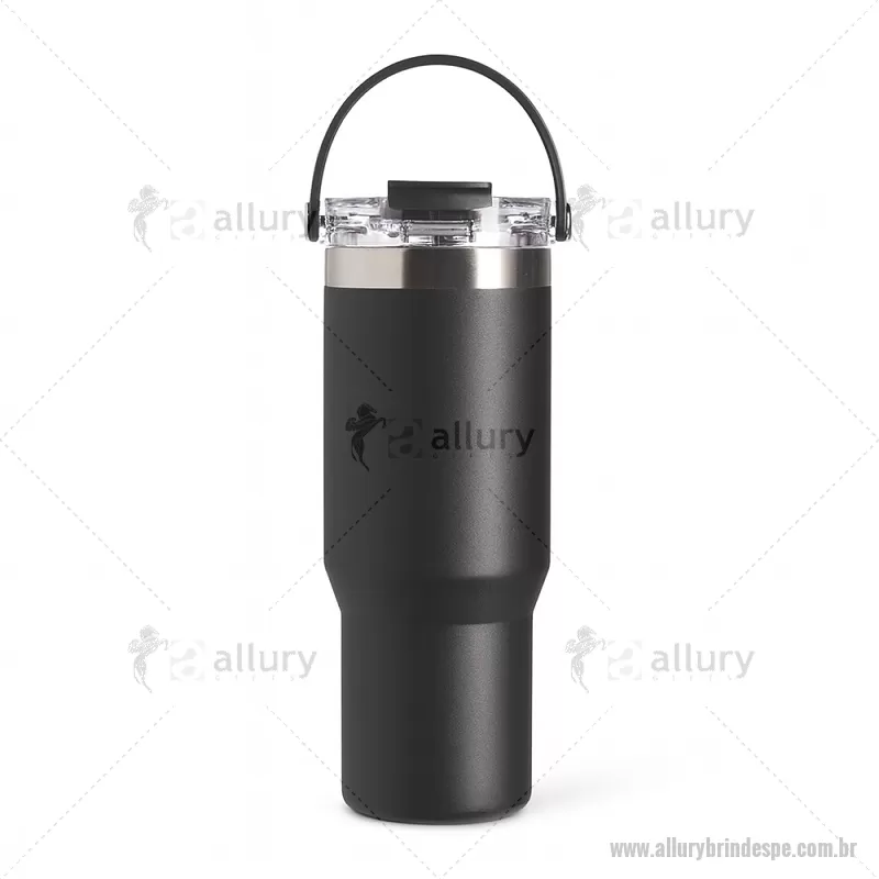 Copo térmico de 900 ml em aço inox com parede dupla, ideal para manter a temperatura de bebidas por mais tempo. Possui tampa plástica rosqueável com vedação a vácuo, proteção para o bocal, bico flip com canudo interno removível e alça para transporte. Conta com acabamento em pintura eletrostática, garantindo durabilidade e visual sofisticado. - - ALLPECPO146
