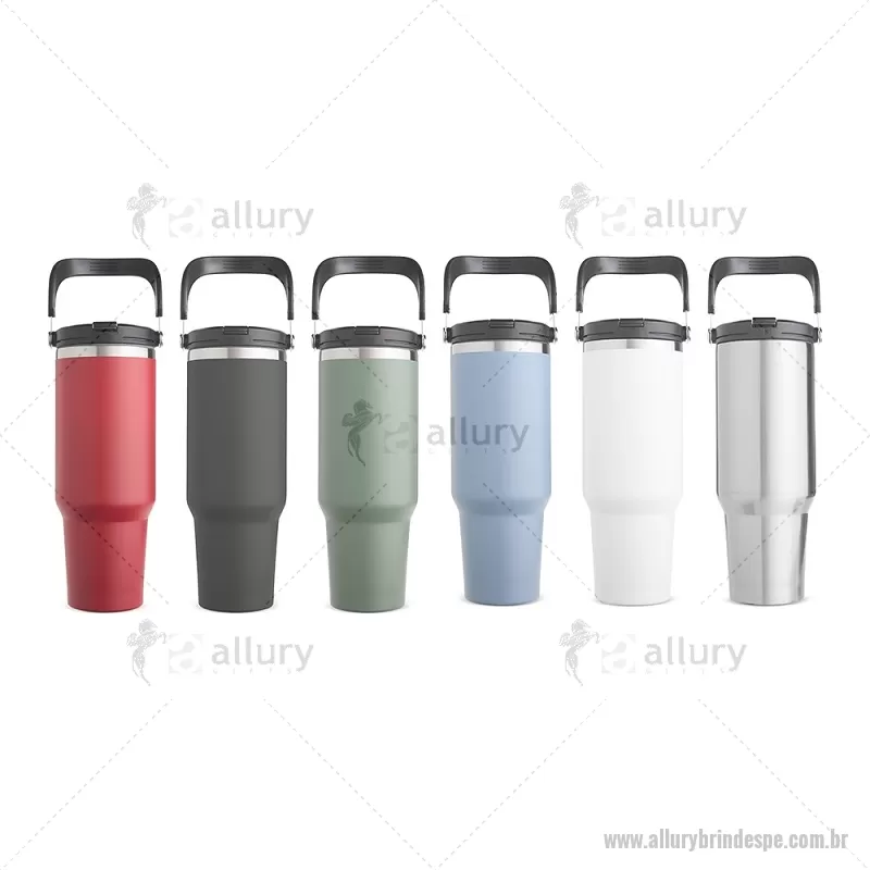 Copo térmico de 1,25 L em inox com parede dupla, ideal para manter a temperatura das bebidas por mais tempo. Possui tampa plástica rosqueável com vedação a vácuo, canudo plástico removível e alça em inox com revestimento em plástico para transporte seguro e prático. - - ALLPECPO147