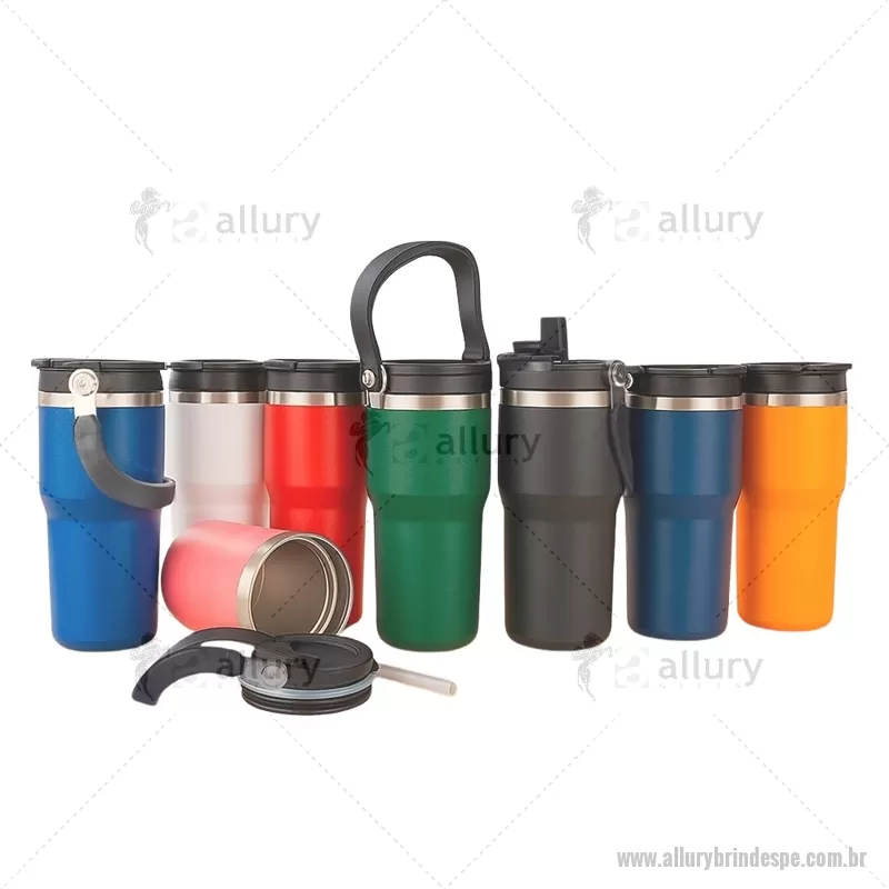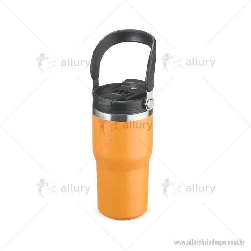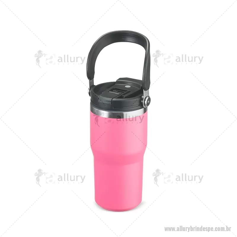 Copo térmico de 600 ml em inox com pintura eletrostática e parede dupla com vedação a vácuo, ideal para manter a temperatura das bebidas por mais tempo. Possui tampa rosqueável com bico flip e proteção para o bocal, canudo interno removível e alça fixa para transporte. Prático e resistente para o dia a dia. - - ALLPECPO149