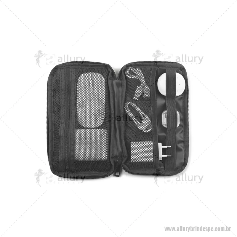 Bolsa organizadora em poliéster reciclado 600D de alta densidade com compartimento principal espaçoso para acessórios tecnológicos Bolsa organizadora para acessórios tecnológicos, recomendada para cabos, carregadores e pequenos dispositivos. Composta por poliéster reciclado 600D de alta densidade e forro em poliéster reciclado 210D. O compartimento principal contém vários bolsos para organizar individualmente todos os seus acessórios de maneira personalizada e funcional. Medidas: 220 x 130 x 25 mm Peso do Produto (g.): 72 - - ALLPEEMB047