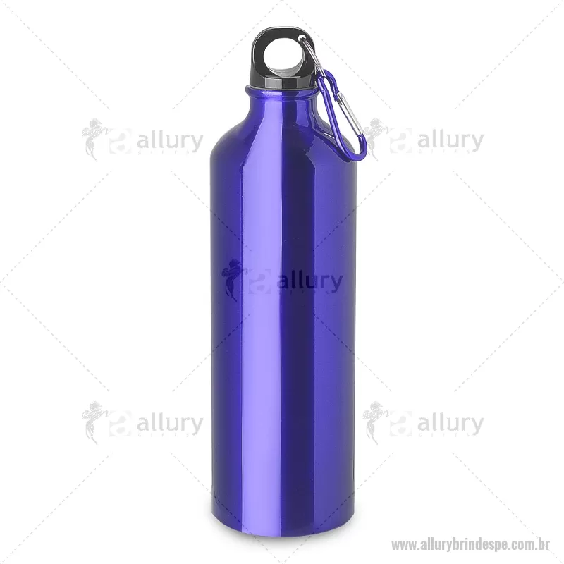 Garrafa em alumínio 750ml, tampa de plástico com mosquetão colorido , com pintura metálica.