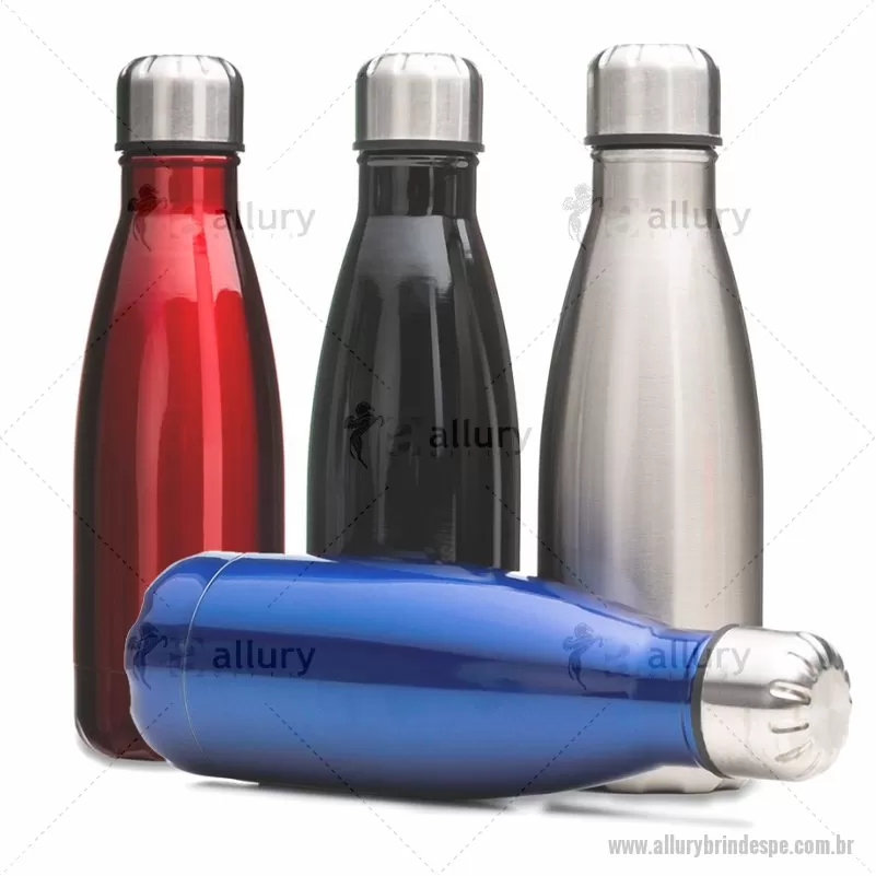 Garrafa inox 500ml com pintura colorida e tampa prata rosqueável. Brinde ideal para feiras e ações de marketing. - - ALLPEGAR031