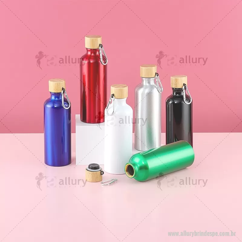 Garrafa de alumínio 500ml, possui tampa de bambu e acompanha mosquetão de alumínio. - - ALLPEGAT100
