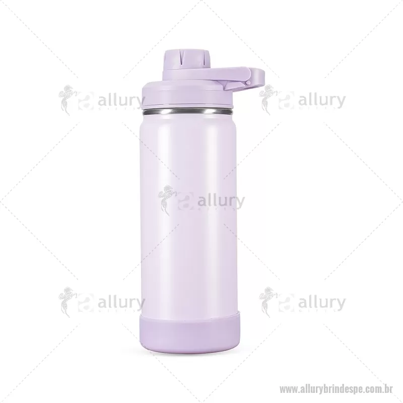 Garrafa Térmica 550ml inox com pintura eletrostática. Mantém a temperatura de líquidos por mais tempo graças à estrutura de parede dupla e ao isolamento a vácuo. Possui tampa plástica rosqueável com protetor de bocal e alça fixa. Acompanha protetor removível em silicone para a base. Altura : 22,5 cm x Largura : 7,4 cm x Circunferência : 23,3 cm Tamanho total aproximado (CxL): Diâmetro: 5,5 cm Peso aproximado (g): 290 - - ALLPEGAT172