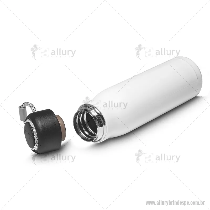 Garrafa térmica em aço inox 550ml brilhoso com parede dupla isolada a vácuo, com alça em corda para facilitar o transporte. Tampa plástica rosqueável e anel de silicone para vedação. Conserva líquidos : ??8 horas ??12 horas Dimensão do produto: 25xø7cm (AxøD) Peso do produto: 0,252kg - - ALLPEGAT101