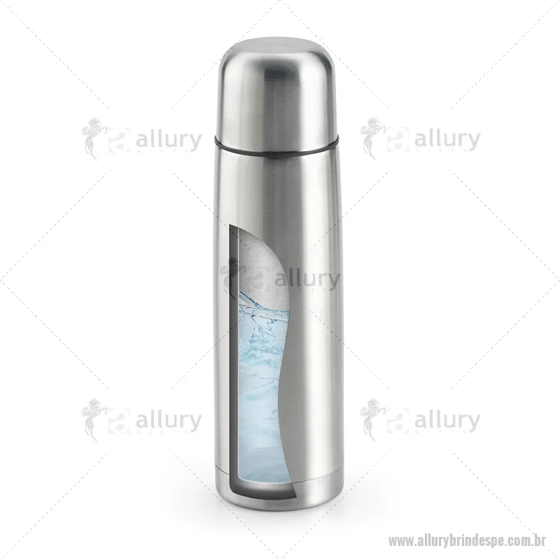 Garrafa em aço inox de parede dupla térmica, isolada a vácuo. Tampa interior com sistema de botão abre e fecha dando maior isolamento e segurança contra vazamentos. O design da tampa vira um copo para que possa consumir a sua bebida preferida. Capacidade até 500 mL. Fornecida em caixa presente. Certificação EU Food Grade. ø69 x 240 mm - - ALLPEGAT076