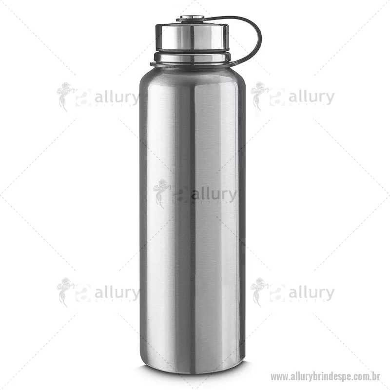 Garrafa Squeeze Metal Térmico em aço inox com parede dupla com capacidade de 1L,tampa em aço inox rosqueável com anel de silicone para vedação com alça em plástico. - - ALLPEGAT119