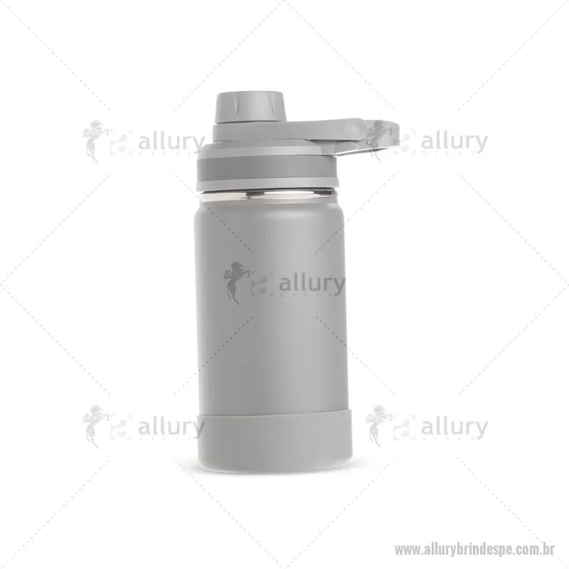 Garrafa Térmica 350ml Descrição: Garrafa térmica em inox, pintura eletrostática e capacidade para até 350ml. Conta com estrutura de parede dupla e vedação a vácuo, permitindo conservar a temperatura de líquidos por mais tempo. Possui tampa rosqueável com protetor para o bocal e alça fixa para facilitar o transporte. Acompanha protetor para a base em silicone. Altura : 18,2 cm x Largura : 10 cm x Circunferência : 23 cm Peso aproximado (g): 238 - - ALLPEGAT158