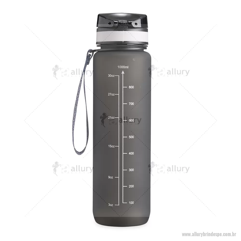 Squeeze plástica de 1 litro com tampa de acionamento automático e trava de segurança. Acompanha cordão de nylon. Altura : 28,5 cm x Largura : 7,8 cm Circunferência : 24,8 cm Tamanho total aproximado (CxL): Diâmetro (sem tampa) - 5,4 cm Peso aproximado (g): 183 - - ALLPESQP099