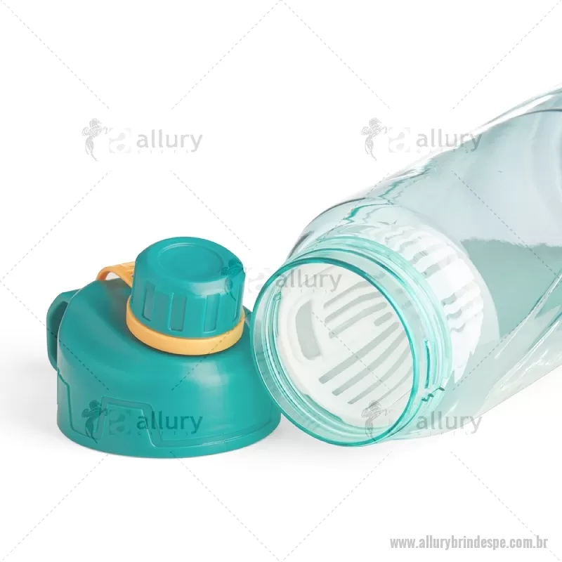 Garrafa Squeeze Plástico 800ml com infusor de bebidas. Com design em relevo, a squeeze possui tampa rosqueável com alça para transporte e tampa de proteção para o bocal. - - ALLPESQP106