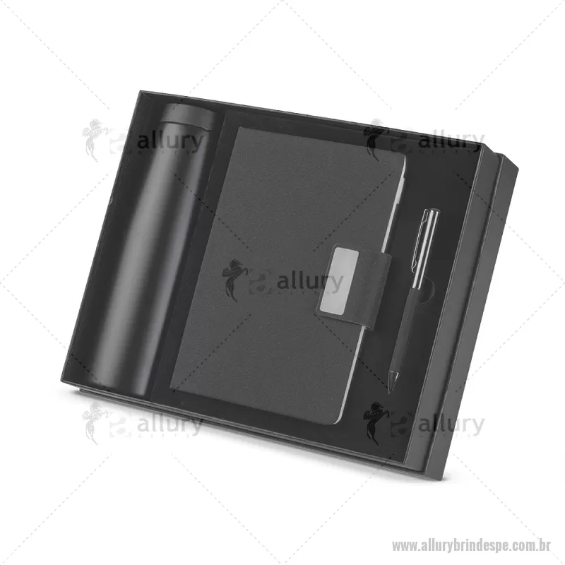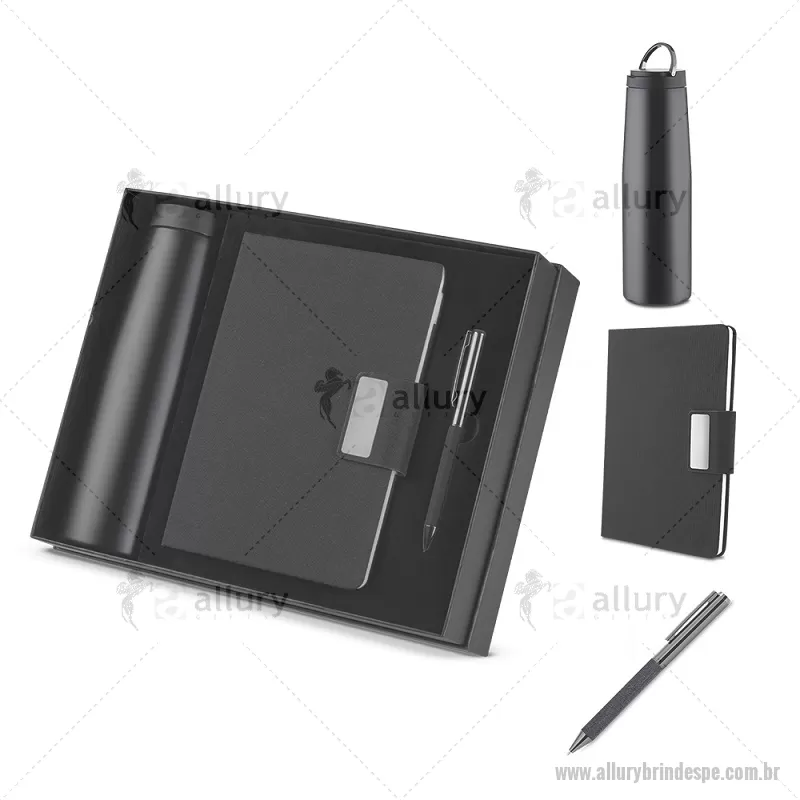 Kit escritório Caderno, Garrafa e Caneta Metalica Conjunto composto por caderno em material RPET com fechamento magnético,com 100 páginas, caneta modelo twist com detalhe em tecido RPET preto e garrafa de parede dupla em inox (304 interno e 201 externo), com capacidade de 550ml. Acompanha caixa presenteável. Peso do Produto: 0,256kg (Caderno) Peso do Produto: 0,277kg (Garrafa) Peso do Produto: 0,019kg (Caneta) Peso do Produto: 0,491kg (Caixa) Dimensão do Produto: 23,5x7,1cm (Garrafa) Dimensão do Produto: 21x14,5cm (Caderno) Dimensão do Produto: 7,6x30x24,7cm (Estojo presenteável) - - ALLPEKES083