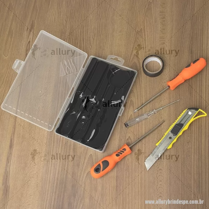 it ferramenta 5 peças em estojo plástico com trava de segurança. Contém Uma chave phillips, uma chave de fenda, uma chave teste, um estilete e uma fita isolante. - - ALLPEFER061