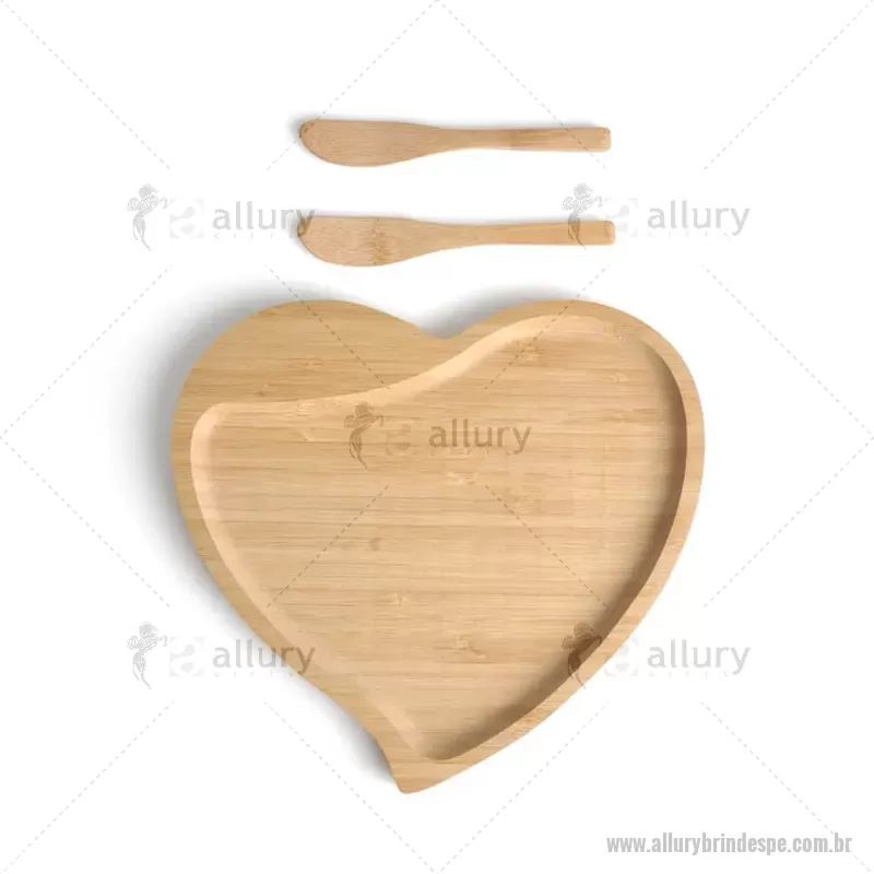 Kit Petisqueira em bambu com formato de coração e duas espátulas de 14 cm. Utilizamos o Bambu, por ser uma matéria prima ecológica, autossustentável e com alta resistência. Além de versátil, o Bambu é 30% mais leve que as madeiras de lei. Sua utilização não agride o meio ambiente, pois, quando ceifado rebrota em pouco tempo. Kit com boa área de impressão, ideal para datas comemorativas. Dia das Mães, Dia dos Namorados, Dia das Mulheres, Dia dos Pais, Outubro Rosa e etc... EMBALAGEM Caixa Preta - 235x215x20 mm (AxLxP) RECOMENDAÇÃO DE PERSONALIZAÇÃO Uma gravação a Laser CO2 na Tábua. Uma gravação Silk 1 cor na Tampa Caixa. - - ALLPEKGP009