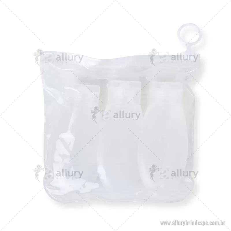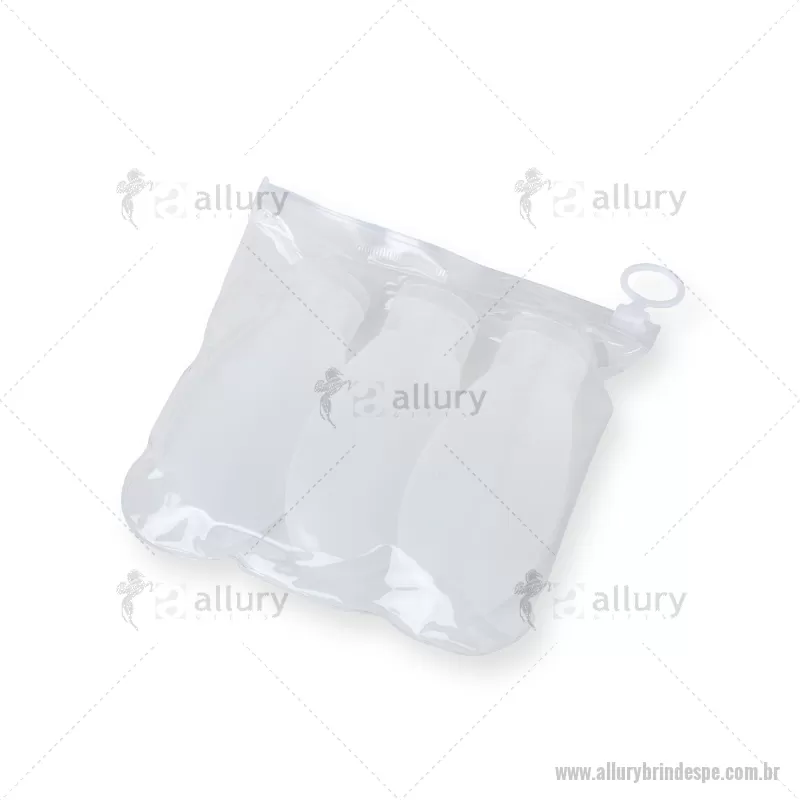 O kit viagem 3 Peças é a escolha perfeita para quem busca praticidade e organização durante as viagens. O conjunto inclui três frascos plásticos de 60ml, ideais para transportar líquidos e produtos de higiene pessoal, respeitando as normas de segurança para viagens aéreas. O estojo de PVC com ziplock mantém os itens organizados e seguros, além de evitar que a umidade espalhe para a área externa, caso os itens estejam molhados. Estojo: Altura : 14,9 cm x Largura : 15,1 cm Tamanho total aproximado (CxL): Frasco 10,7 cm x 5,1 cm Peso aproximado (g): 50 - - ALLPEKVG018