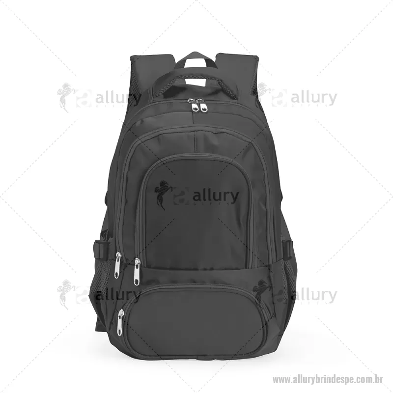 Mochila Poliéster 17 Litros Descrição: Mochila feita em poliéster impermeável com capacidade de até 17 litros. Possui compartimento interno que inclui um pequeno bolso com zíper e divisória acolchoada para notebooks de até 14 polegadas. Conta ainda com três bolsos externos em tamanhos diferentes e mais dois bolsos laterais em tela com regulagem. As alças de costas e de mão possuem revestimento espumado. Altura : 37 cm x Largura : 31 cm x Profundidade : 15 cm Peso aproximado (g): 463 - - ALLPEMC246