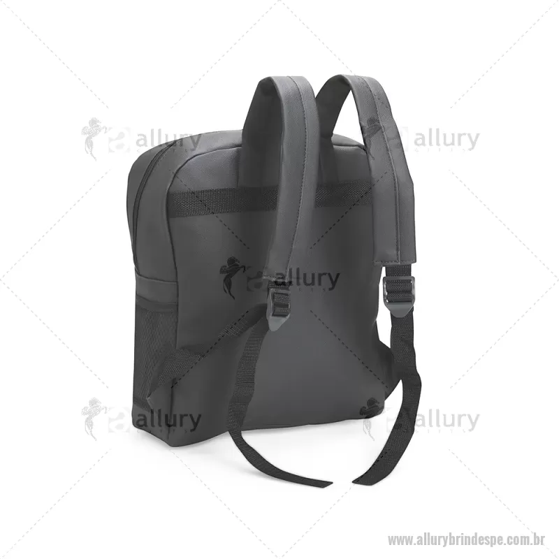 Mochila em couro sintético impermeável, com fechamento em zíper e capacidade de até 20 litros. Possui compartimento interno com divisória para notebook de até 14”, além de bolso frontal com plaquinha decorativa e dois bolsos laterais em tela de nylon. Prática e ideal para o uso diário. - - ALLPEMC249