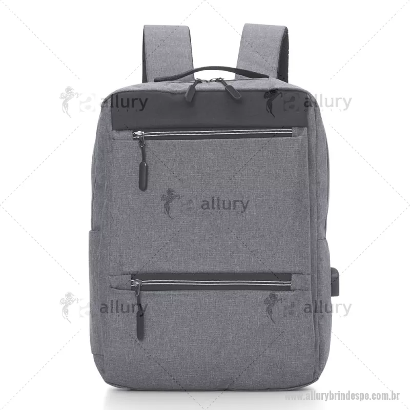 Mochila confeccionada em nylon com compartimento para notebook até 15,6 polegadas. Contém compartimento grande com divisórias para documentos, eletrônicos e caneta, dois compartimentos frontais com abertura horizontal, bolso lateral e adaptador USB externo com cabo acoplado, permitindo a conexão de um carregador portátil de dentro da mochila e transferência da carga para o lado externo, ocultando o carregador e viabilizando a utilização do celular durante o processo. Contém zíperes com pegadores plásticos, alça de mão em nylon e alças para as costas ajustáveis com revestimento espumado antitranspirante. - - ALLPEMC136