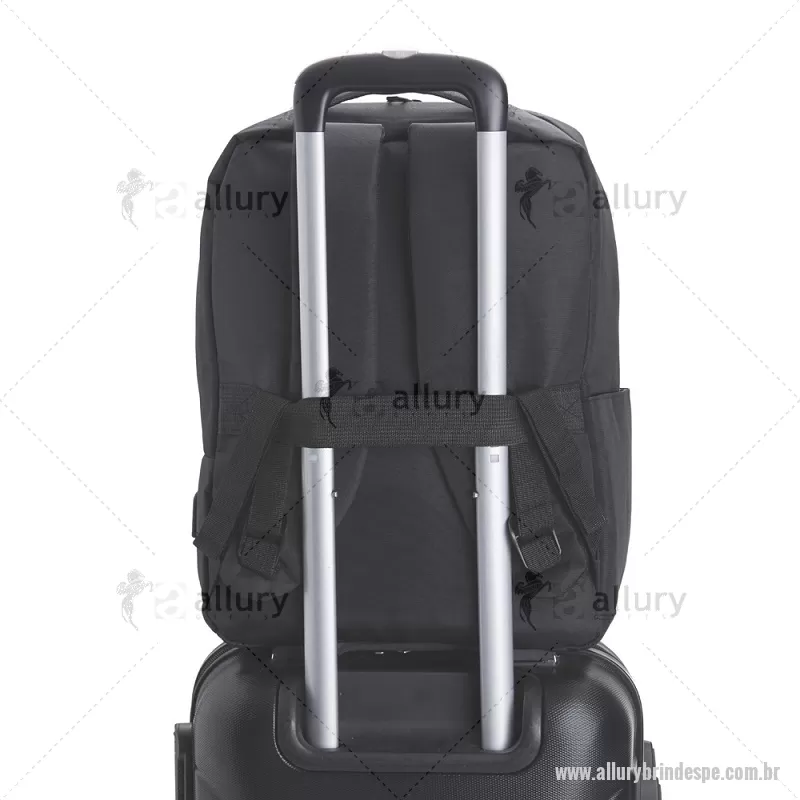 Mochila de Nylon 22 Litros com 4 compartimentos, sendo o principal com bolso para notebook 15,6. Com divisórias internas para acessórios, a mochila possui bolso lateral, suporte externo USB e alça para engate em malas de viagem. " - - ALLPEMC194