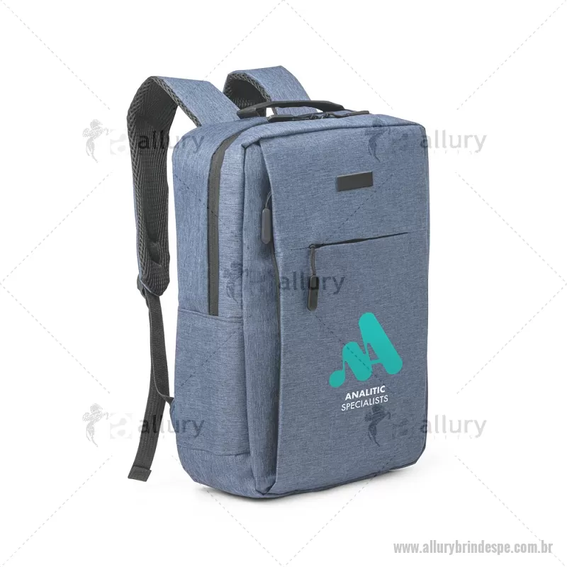 Mochila para notebook 15.6" em 300D de alta densidade com placa para personalização 15 L Mochila para notebook em 300D de alta densidade. Compartimento principal forrado, com divisória almofadada para computador até 15.6" e diversos bolsos interiores. Contém ainda bolso frontal e 2 bolsos laterais. Parte posterior e alças almofadadas. Placa metálica removível com imã para fácil gravação. Capacidade até 15 L. Medidas: 300 x 420 x 120 mm Peso do Produto (g.): 0,5 kg - - ALLPEMC247