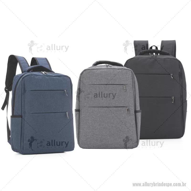 Mochila para Notebook em tecido poliéster. Parte externa: 3 Bolsos frontais com ziper; 2 Bolsos laterais; Alça de mão e ombro acolchoadas. Parte interna: Compartimento acolchoado p/ notebook de 39x28cm. Tamanho total do Notebook - 17¨ - - ALLPEMC144