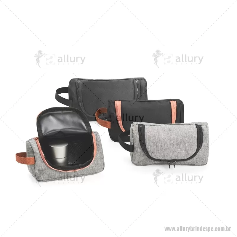 Nécessaire em nylon resistente à água, com fechamento em zíper, divisória interna em tela para melhor organização e alça lateral que facilita o transporte. Ideal para uso diário ou viagens. - - ALLPENC147