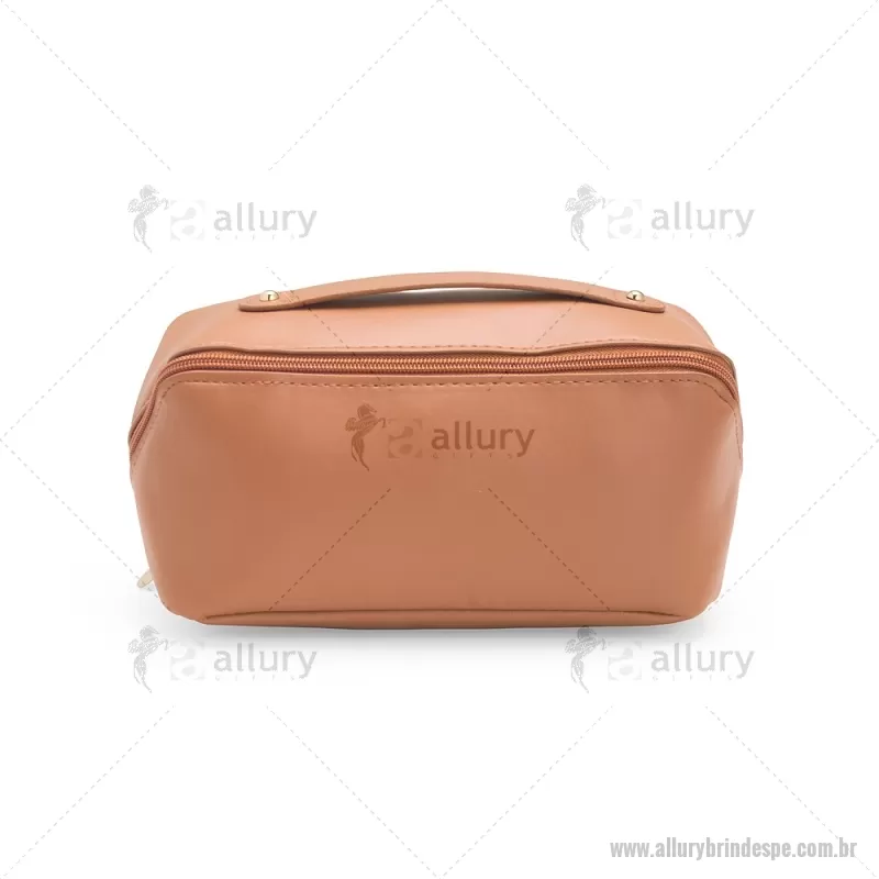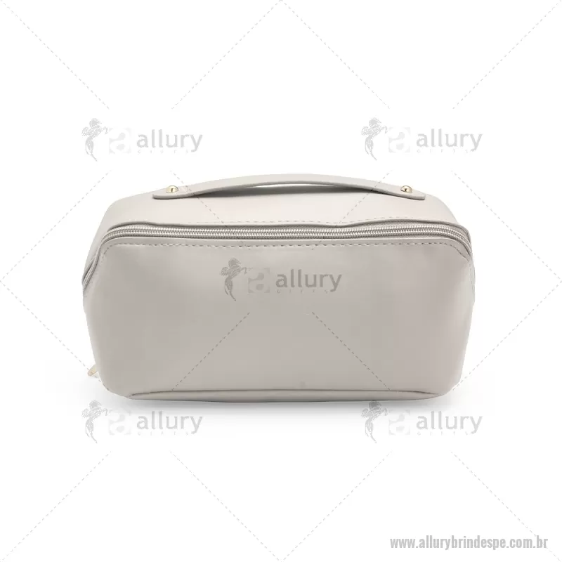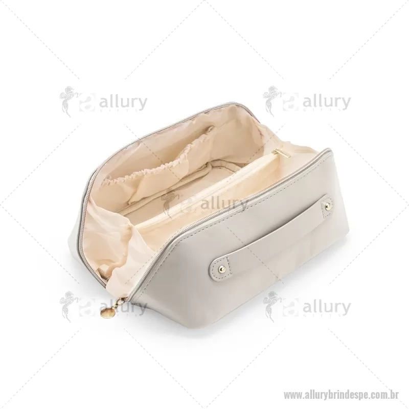 Nécessaire em (PU) poliuretano impermeável com abertura em 180 graus inspirada no formato de concha. O compartimento interno conta com dois bolsos laterais abertos e um, localizado na parte central, com fechamento em zíper. Possui alça para transporte. Altura : 11 cm x Largura : 22,5 cm x Profundidade : 9,5 cm Peso aproximado (g): 108 - - ALLPENC143