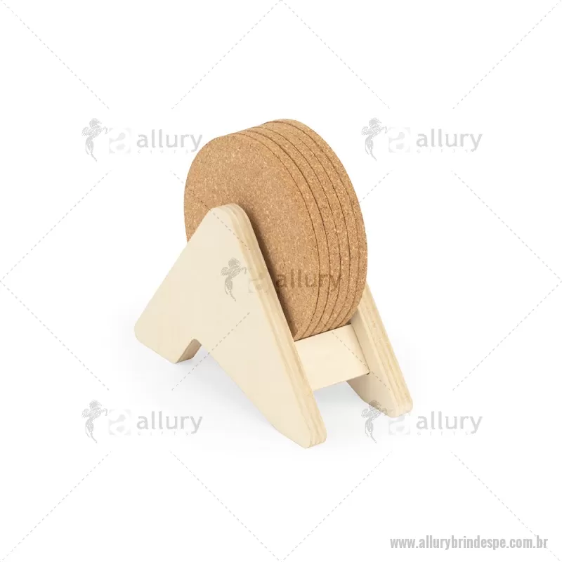 Porta copos em madeira com 6 bases para copos em cortiça. Desfrute da sua bebida evitando marcas na mesa. Certificação EU Food Grade. A cor e o resultado da impressão nos materiais naturais pode variar entre produtos. medidas: 140 x 92 x 78 mm Peso do Produto (g.): 80 - - ALLPEPCO010