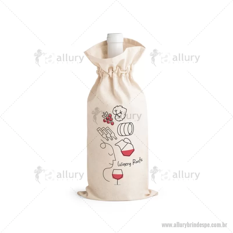 Sacola para garrafa 100% algodão (180 g/m²) com cordão para fechar, também em algodão. Medidas do Produto 15,0 x 34,0 cm - - ALLPEKVI035