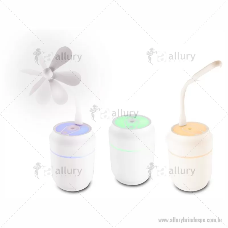 Umidificador de mesa com 200ml de capacidade e funcionamento por 8 horas. Possui saída USB para lâmpada LED ou Ventilador (inclusos). Carrega via USB. Possui iluminação multi-corese se desejado. Ótimo brinde para ações promocionais e eventos corporativos. - - ALLPEKES051